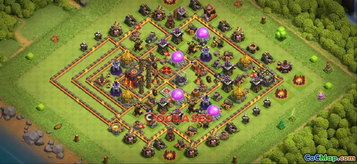 A Town Hall 10 farming base in Clash of Clans is designed specifically to protect resources while allowing players to efficiently gather and store loot. At this level, players have greater access to powerful troops and defenses, making resource management a key aspect of gameplay. The layout typically emphasizes strategic placement of defensive structures, such as cannons, archer towers, and mortars, to safeguard storages from enemy attacks, while still maintaining a design that allows for easy farming routes for one’s own attacks.
