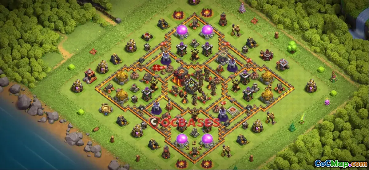 In Clash of Clans, farming refers to the practice of collecting resources like gold, elixir, and dark elixir effectively. A farming base layout at Town Hall 10 will typically prioritize the placement of storages and collectors in strategic positions, allowing players to defend their wealth from attackers. Defensive buildings such as cannons, archer towers, and splash damage defenses should be optimally placed to create a strong protective barrier around resource storages while also managing to repel attacking troops efficiently.