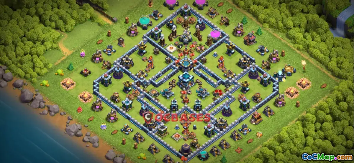 Discover the ultimate Town Hall 13 base! Explore our symmetric, anti-3 star designs with strong anti-air and anti-Electro Dragon strategies. Copy base link!