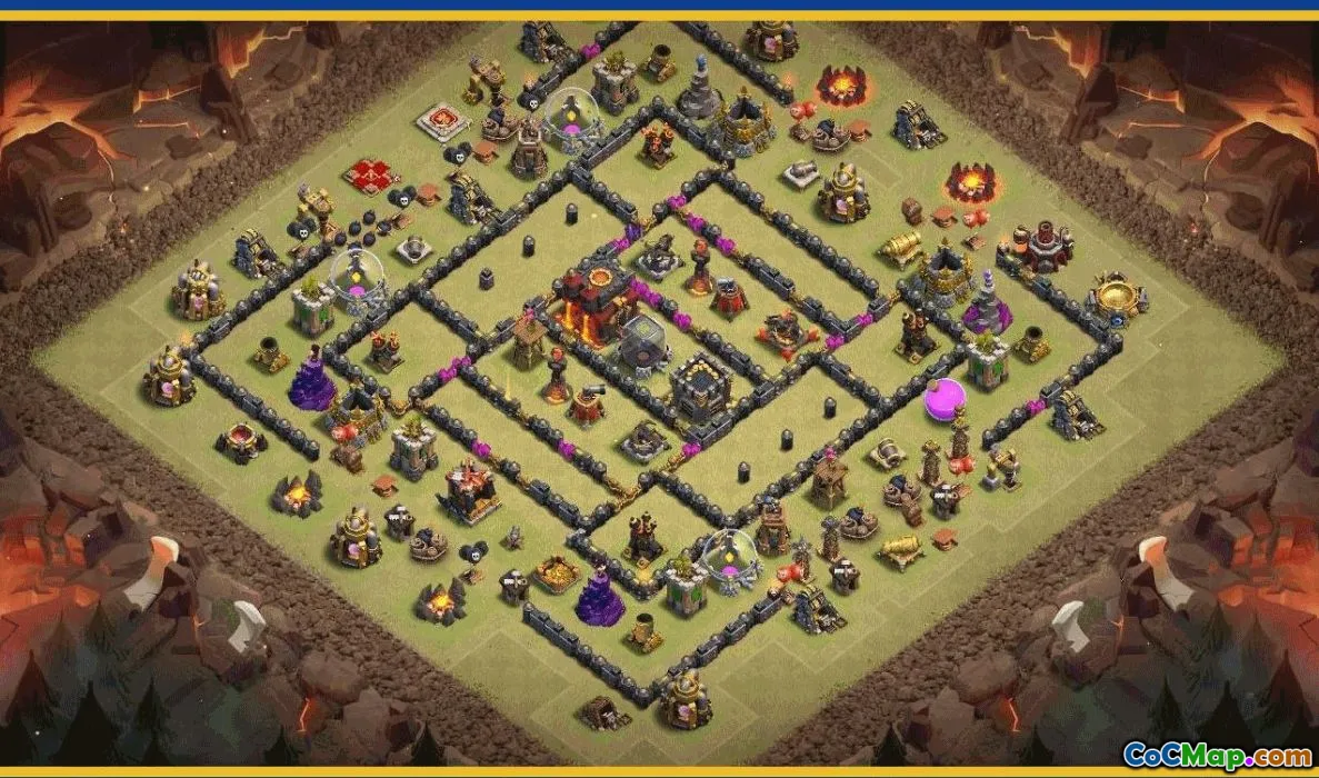 The base layout for Clash of Clans at Town Hall 10 offers a comprehensive design that caters to various aspects of gameplay including defense, attack strategies, and resource protection. This layout typically features well-placed defenses such as cannons, archer towers, and wizard towers to provide optimal coverage for the entire village. The positioning of the Town Hall at the center ensures it is well-protected, encouraging opponents to breach multiple layers of defenses before reaching the core.