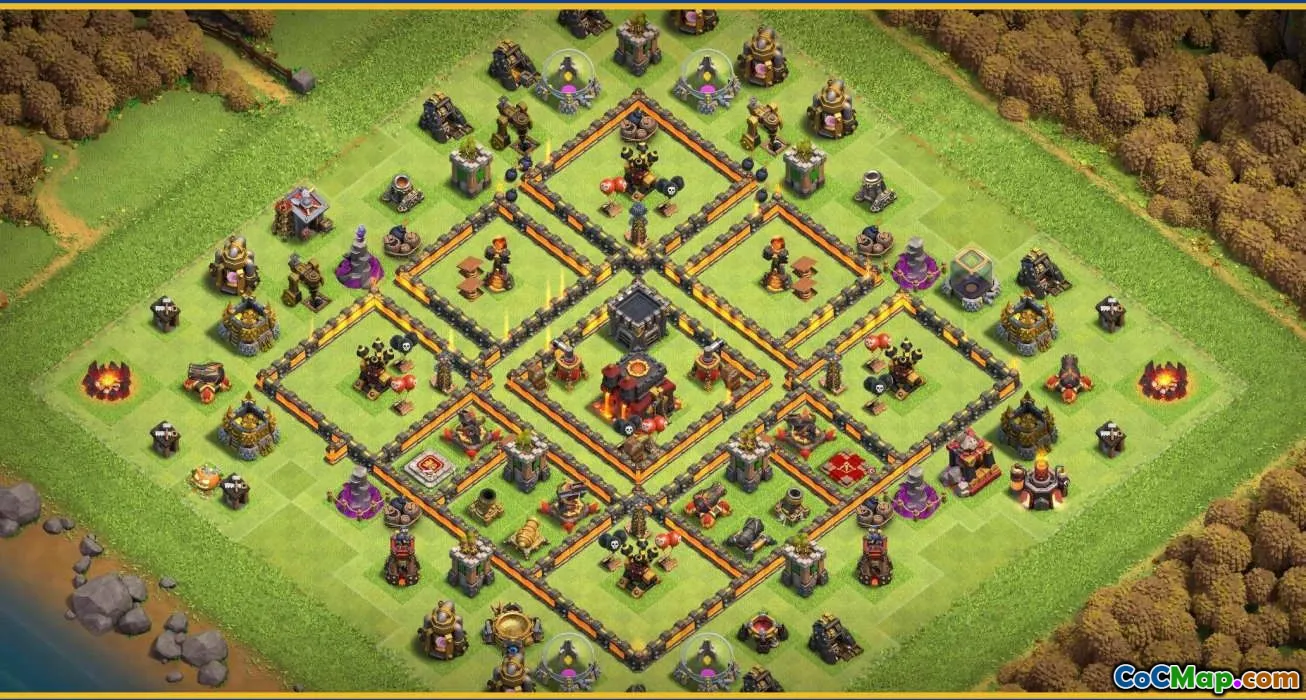 Discover top Clash of Clans Town Hall 10 base layouts, war defenses, trophy bases, and maps. Copy and customize your perfect CoC village today!