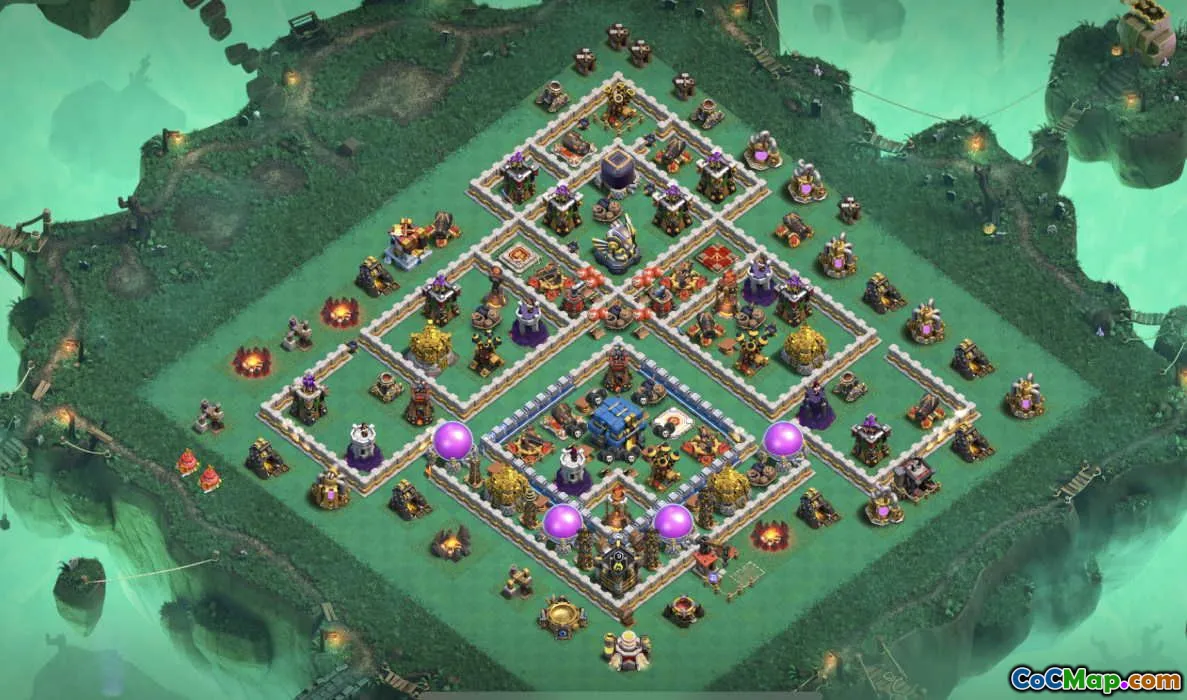 In addition to the general defense setup, specialized base designs are available for different purposes like war defense, trophy protection, or resource safeguarding. War bases are typically arranged to prevent enemies from accessing the core of the village easily, while trophy bases focus on protecting winnings during multiplayer battles. Resource bases aim to make stealing resources more difficult, encouraging attackers to think twice before launching their assault.