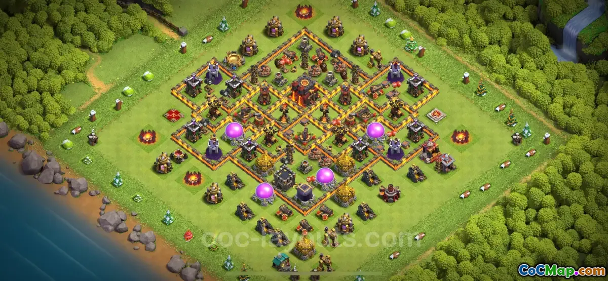 Discover the ultimate TH10 base layout for Clash of Clans 2024! Max levels, anti 3-star design, and a full upgrade link for top defense strategies.
