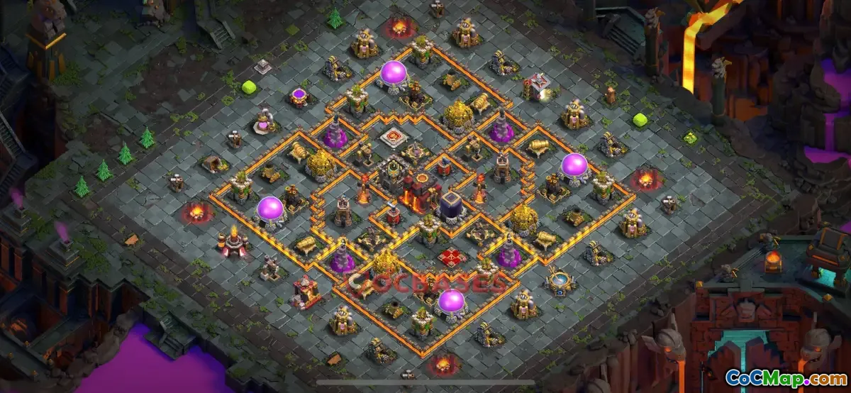 A well-crafted trophy base in Town Hall 10 will have strong defensive placements, ensuring that high-value targets, like the Town Hall and Clan Castle, are well protected. Players generally focus on creating layers of defenses that funnel enemy troops into traps or heavy fire, providing a significant challenge for attackers. One common strategy among players is to centralize their Town Hall while surrounding it with strong defensive structures such as x-bows and inferno towers.