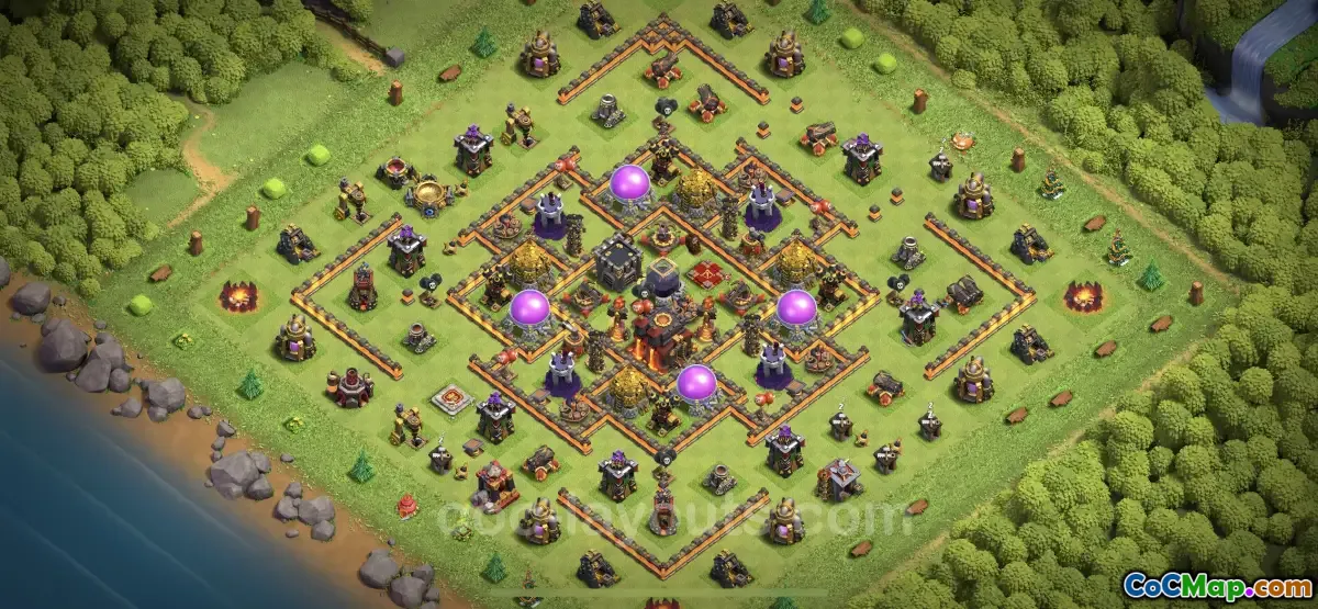 The Clash of Clans Town Hall Level 10 base layout is specifically designed to enhance trophy defense while providing an effective strategy against air and dragon attacks. This base layout focuses on creating a strong defensive formation that can withstand various assault strategies from opponents who aim to collect trophies through the destruction of your village. By utilizing the right defensive structures and positioning them strategically, players can ensure that their base is well-protected against frequent air raids, particularly those involving dragons, which are common at this level.