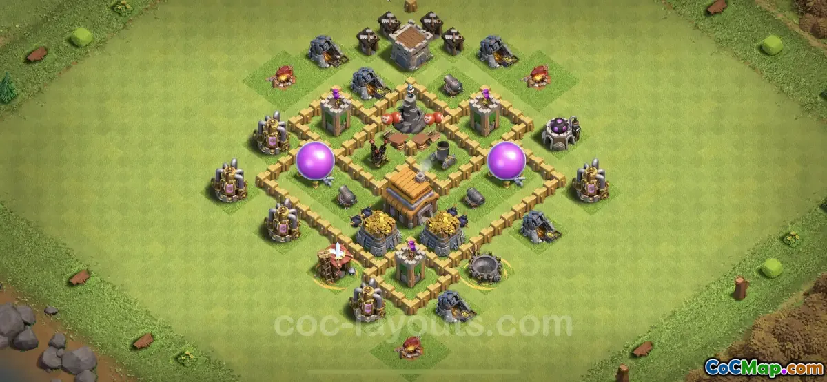 Ten specyficzny układ zawiera strukturę łączącą, co oznacza, że najważniejsze budynki i zabezpieczenia są rozmieszczone strategicznie, aby utworzyć optymalne strefy ochrony. Rozmieszczenie budynków, takich jak magazyny, umocnienia i pułapki, ma kluczowe znaczenie w odstraszaniu atakujących, utrzymywaniu silnego bezpieczeństwa zasobów i zapewnieniu, że najcenniejsze zasoby pozostaną chronione podczas nalotów.