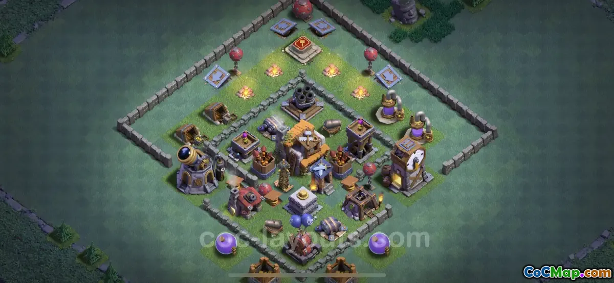 The Builder Hall Level 5 in Clash of Clans features a strategic base design known as the "Anti Everything Base." This design is engineered to defend against a wide array of attacks, maximizing the defensive capabilities of the builder's hall. Players can replicate this effective layout by utilizing the provided link, which offers a visual representation of the base's structure, allowing for optimal placement of defending units and traps.