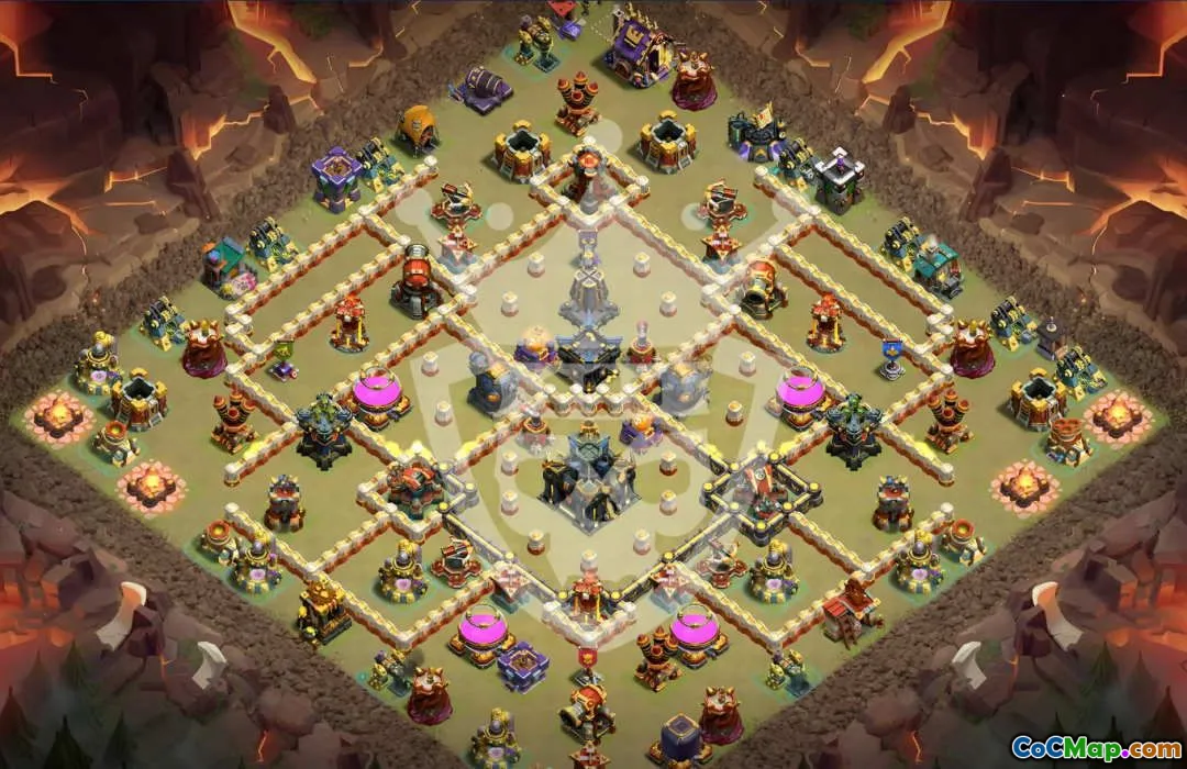 Discover highly optimized Clash of Clans base layouts for Town Hall 17, tailored for various purposes such as trophy pushing, war defense, and map control. These layouts are designed to maximize protection of your resources and defend against attack strategies commonly used at this level.