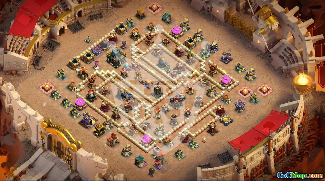 Explore expertly designed Clash of Clans Town Hall 17 base layouts suitable for various gameplay aspects including trophy pushing, war defenses, and overall map control. These layouts are crafted to maximize protection for your resources and Town Hall while optimizing defensive placements to counter common attacking strategies.