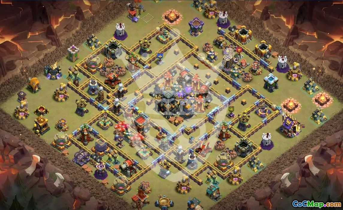 Looking for an effective Clash of Clans Town Hall 17 base layout? This carefully designed map offers balanced defenses ideal for both trophy pushing and war strategies. The layout features centralized resources, well-placed traps, and strategic air and ground defense placements to protect your valuable assets from attackers.