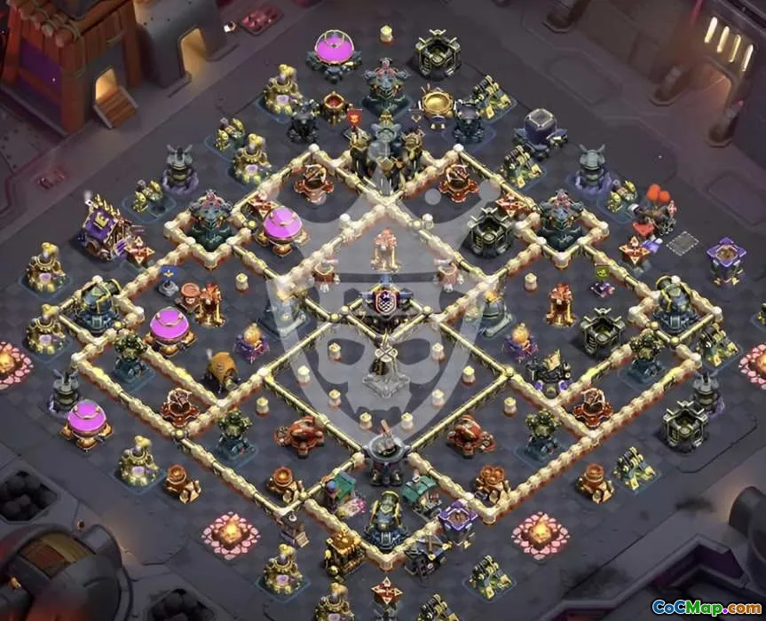Discover this expertly designed Town Hall 17 base layout optimized for various Clash of Clans strategies, including trophy hunting, war defenses, and village protection. This layout effectively consolidates key defenses and traps to thwart enemy attacks, enhancing your survival and defensive wins.