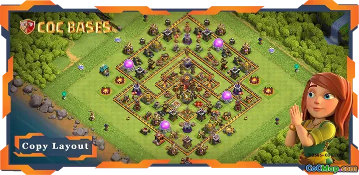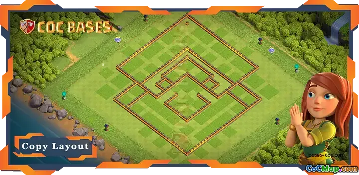 In this base design, the layout features strategic placement of defenses, walls, and traps to create a stronghold that is resistant to a variety of attack styles. Important defensive structures such as Expos, Archer Towers, and Cannons are thoughtfully positioned to cover key areas and provide overlapping firepower. Additionally, the base's core is built to safeguard storages, ensuring that even if the outer defenses are breached, the heart of the base, where most resources are stored, remains protected.