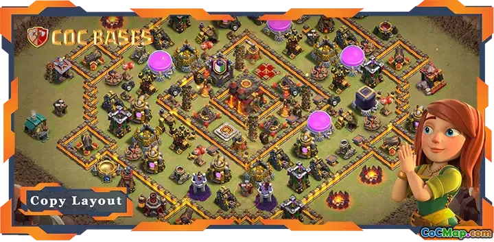 The anti-two-star strategy emphasized in the base design is significant because it aims to deter opponents from effectively utilizing their higher-level troops and strategies to secure more than one star in an attack. This is particularly important in competitive modes where losing stars can impact overall rankings and progress. To achieve this, the design incorporates strategic placements of defenses, traps, and walls tailored to hinder enemy troops, forcing them into less advantageous positions during their attacks.