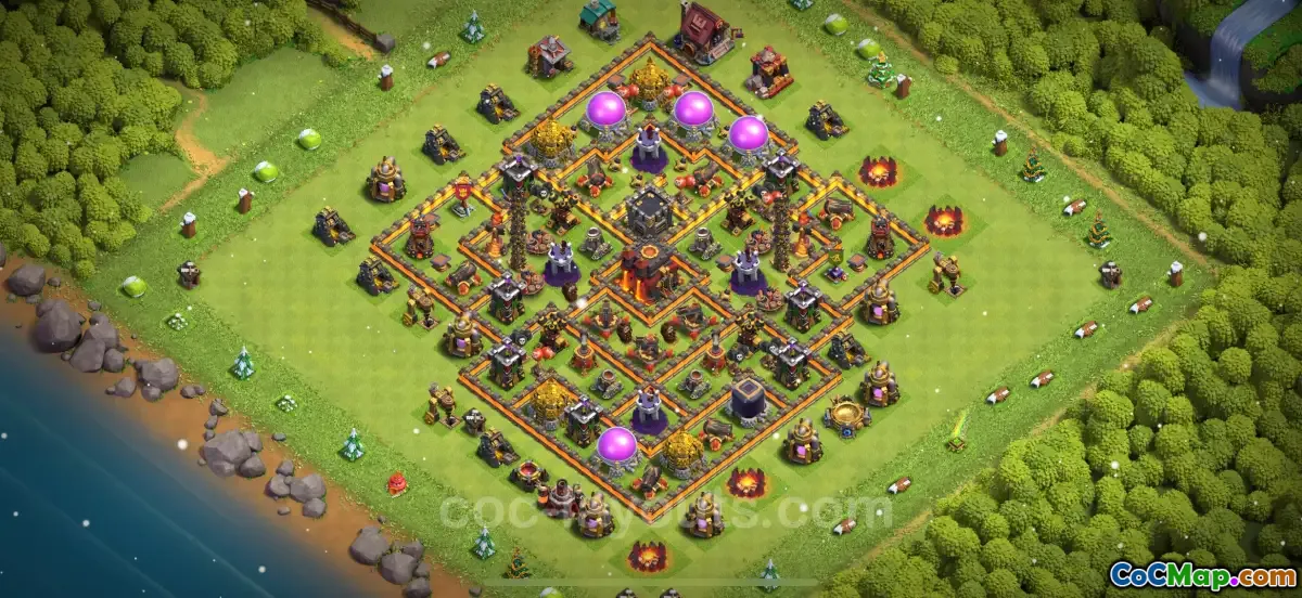 The Trophy Base for Town Hall 10 incorporates advanced defensive structures that are vital for protecting trophies. Players in the Legend League face formidable opponents, so having a well-designed base can mean the difference between losing and retaining valuable trophies. The layout must be carefully crafted to prevent easy access to key areas, making it challenging for attackers to achieve a three-star victory.