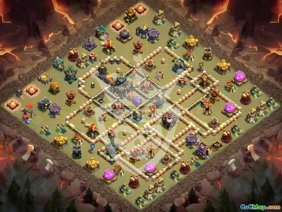 Discover a variety of expertly designed Clash of Clans base layouts tailored for Town Hall 17, including home village setups, trophy bases, and war defenses. These layouts are carefully crafted to maximize protection against attacks while maintaining an attractive and functional design.