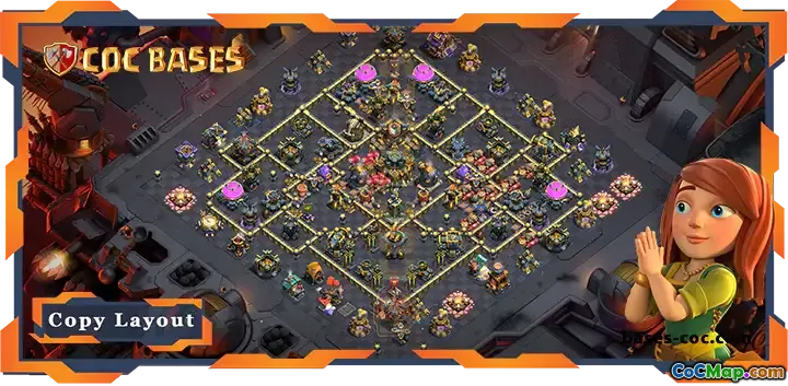 This top War Base TH17 with an anti 2 star layout is crafted to enhance your clan's defenses during clan wars. Its strategic design focuses on protecting key resources and Town Hall, making it difficult for attackers to secure a two-star victory.