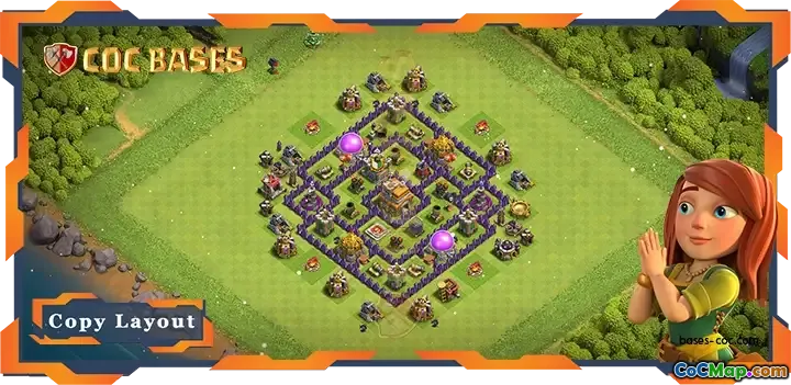 In conclusion, the TH7 defense base featuring an "anti-three stars, anti everything" layout is a well-thought-out design aimed at enhancing defensive capabilities. With the Town Hall in a highly fortified position, combined with strategically placed walls and defense segments, this layout stands ready to challenge attackers. The effective dispersion of defenses further complicates the attacking approach, potentially leading to unsuccessful raids and preserving the integrity of the player's resources and trophies.