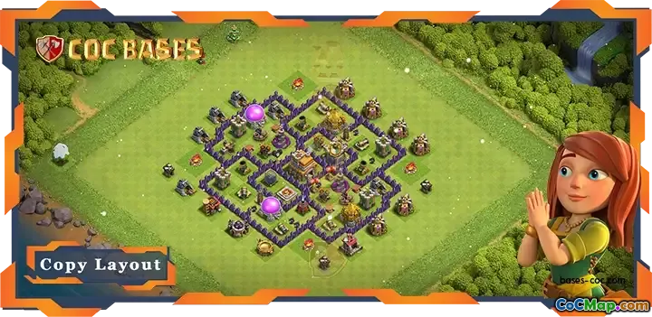Ta baza rolnicza dla ratusza poziomu 7 (TH7) została strategicznie zaprojektowana, aby zapewnić optymalną obronę przed różnymi rodzajami ataków. Układ jest klasyfikowany jako „Układ przeciw wszystkiemu, przeciw 3 gwiazdkom”, co wskazuje, że został specjalnie stworzony, aby chronić przed różnymi strategiami wroga i uniemożliwiać przeciwnikom osiągnięcie trzygwiazdkowego zwycięstwa.