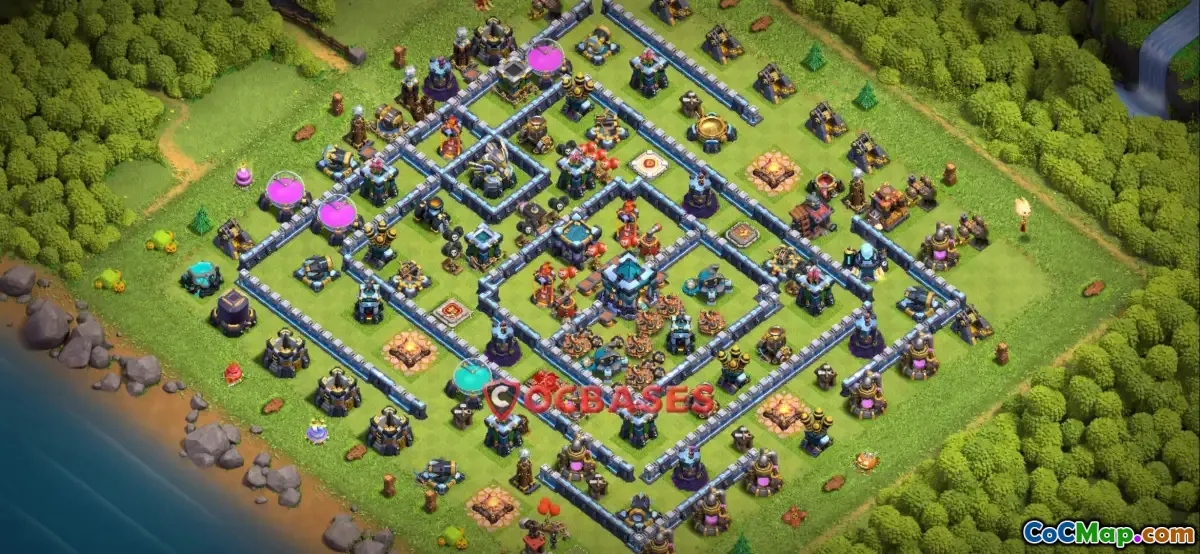 The Town Hall 13 base in Clash of Clans is designed meticulously to provide effective defense strategies against various attacking methods. This base configuration is particularly notable for its symmetric layout, which helps to evenly distribute defensive structures, making it challenging for attackers to exploit weak spots. The symmetry not only enhances the defensive capabilities but also creates a balanced appearance, making the base aesthetically appealing for players who take pride in their designs.