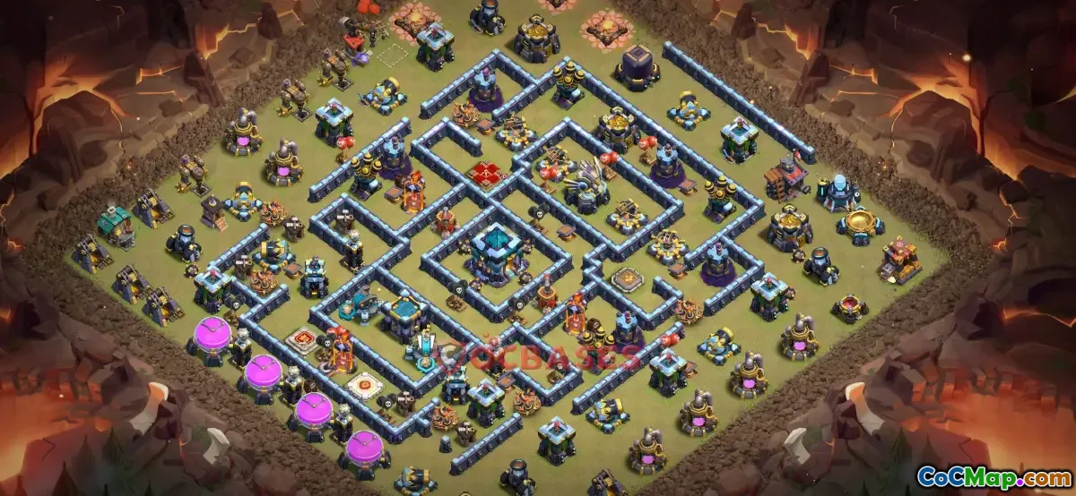 One of the key features of a Town Hall 13 war base is the placement of defenses. Players typically position high-damage defenses, such as inferno towers and eagle artillery, at the core of the base. This helps ensure they can target enemies effectively as they approach the town hall. Additionally, traps like bombs and spring traps are often strategically placed to take out enemy troops, slowing their advance and causing maximum damage.