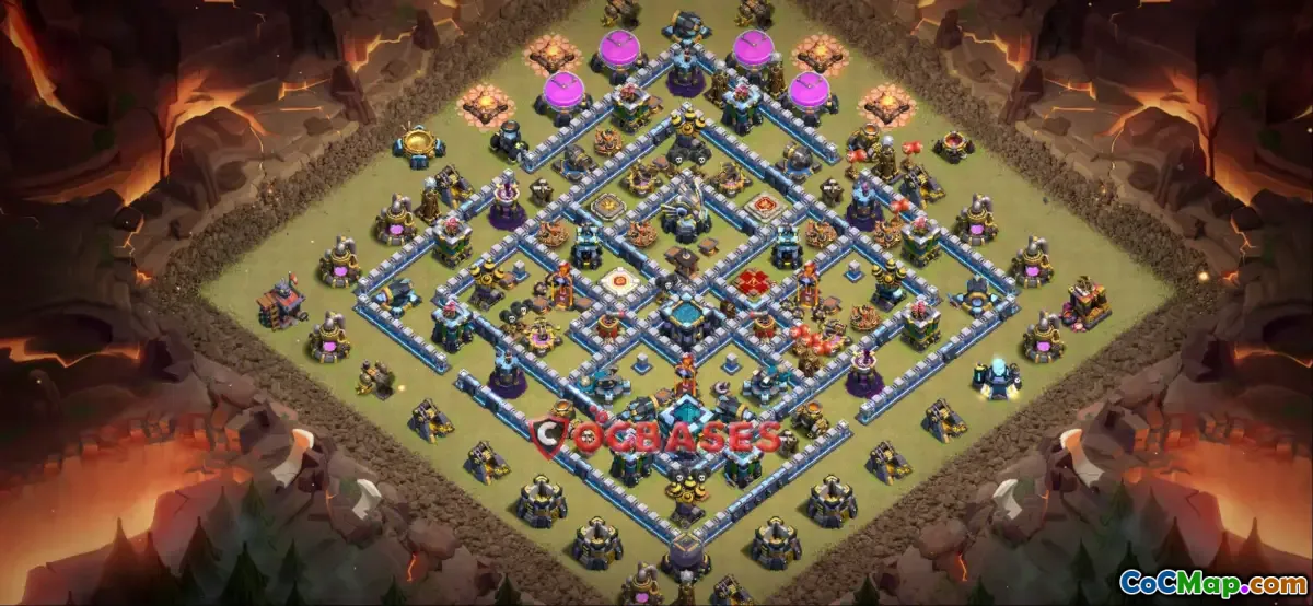 In Clash of Clans, a Town Hall 13 war base is designed to defend against enemy attacks during clan wars. These bases are strategically constructed to protect valuable resources while thwarting the opponent's efforts to earn stars. The layout of a Town Hall 13 war base incorporates various defensive structures, traps, and walls to create a formidable defense, encouraging attackers to expend more troops and time without achieving success.