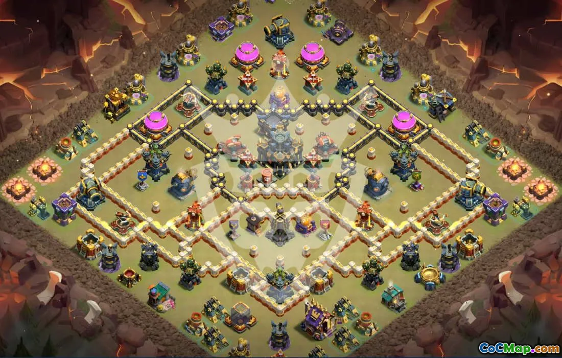 Enhance your Clash of Clans experience with expertly designed Town Hall 17 base layouts, suitable for various gameplay needs including home defense, trophy pushing, and war strategy. These layouts are optimized to protect your resources, defend against enemy attacks, and secure Clan War victories.