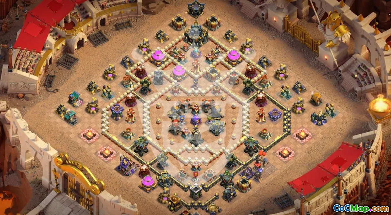 Discover expertly designed Town Hall 17 base layouts for Clash of Clans, tailored for different gameplay styles such as war, trophy pushing, and defending your Home Village. Each layout is crafted to maximize defensive potential while providing a strategic advantage against various attack strategies, ensuring your base remains resilient and well-protected.