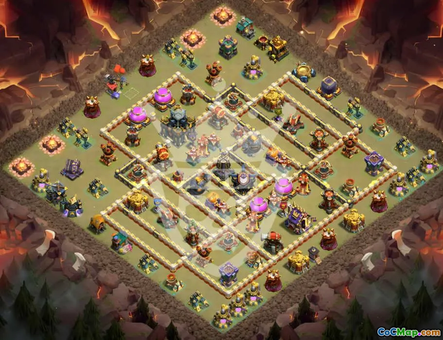 Discover expertly designed Town Hall 17 base layouts suitable for various aspects of Clash of Clans gameplay. Whether you're focusing on protecting resources, climbing trophies, or preparing for clan wars, these layouts offer optimal defense and strategic advantages. Each base layout comes with a convenient copy link, making it easy to implement quickly in your game.