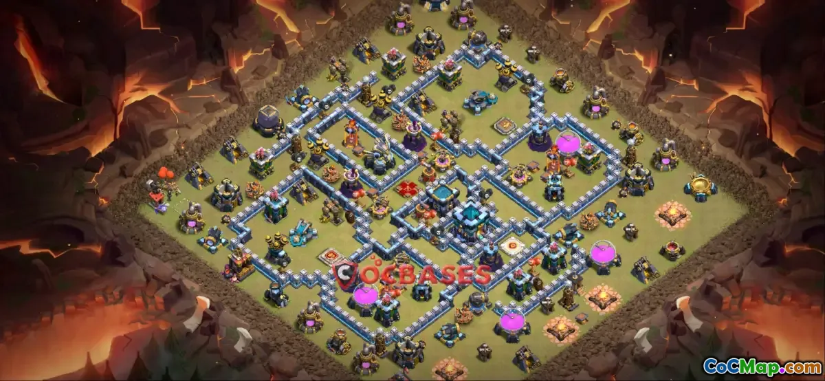 A Town Hall 13 war base in Clash of Clans is specifically designed for players who engage in clan wars. This type of base layout is strategically crafted to defend against enemy attacks, making it more difficult for opponents to secure stars and loot. Players at this level have to consider various defensive structures and traps, positioning them effectively to maximize their defensive capabilities and protect their resources. The design choices reflect a player's understanding of enemy attack strategies, allowing for better anticipation of attacks and strengthening overall defenses.