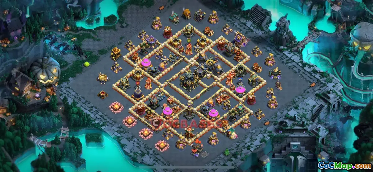 The Town Hall 17 hybrid base in Clash of Clans is a strategically designed layout that combines features suitable for both offense and defense. This type of base setup aims to protect the player's resources and Town Hall while also providing an efficient defensive structure to fend off attackers. It is ideal for players who want a balanced defense that can resist various attack strategies, whether they are attacking or being attacked.