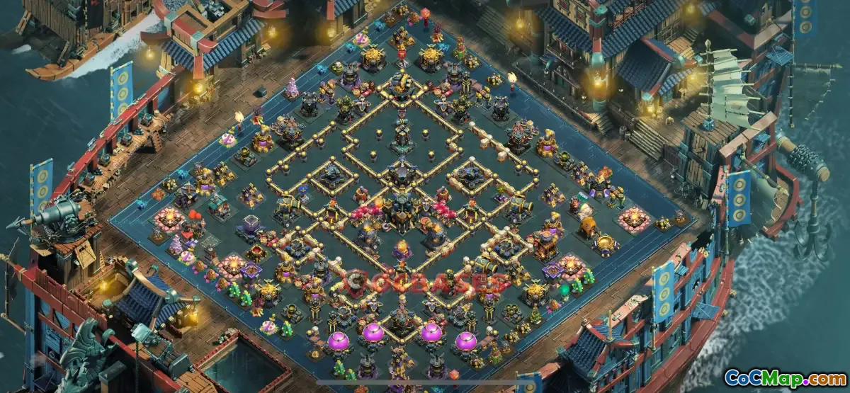 The Town Hall 17 war layout in Clash of Clans is designed to balance offense and defense, providing strategic protection for key resources and defensive structures. This base setup typically emphasizes a well-protected core, where the Town Hall and important resources are centralized within a strong defensive perimeter to thwart enemy raids. Effective base design at this level often incorporates walls, traps, and strategic placement of defenses like cannons, archer towers, and inferno dragons to defend against attacking troops.