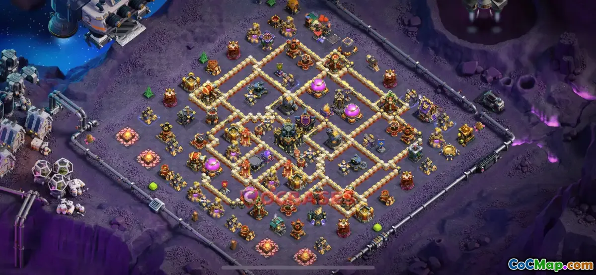 The Town Hall 17 war base in Clash of Clans is a strategic layout designed specifically for maximizing defense during clan wars. This base setup includes carefully placed walls, defenses, and traps to protect the Town Hall and critical resources from enemy attacks. Building an effective war base is essential for clans aiming to win wars, as it can help deter or slow down opponents and preserve their town hall from being easily destroyed.