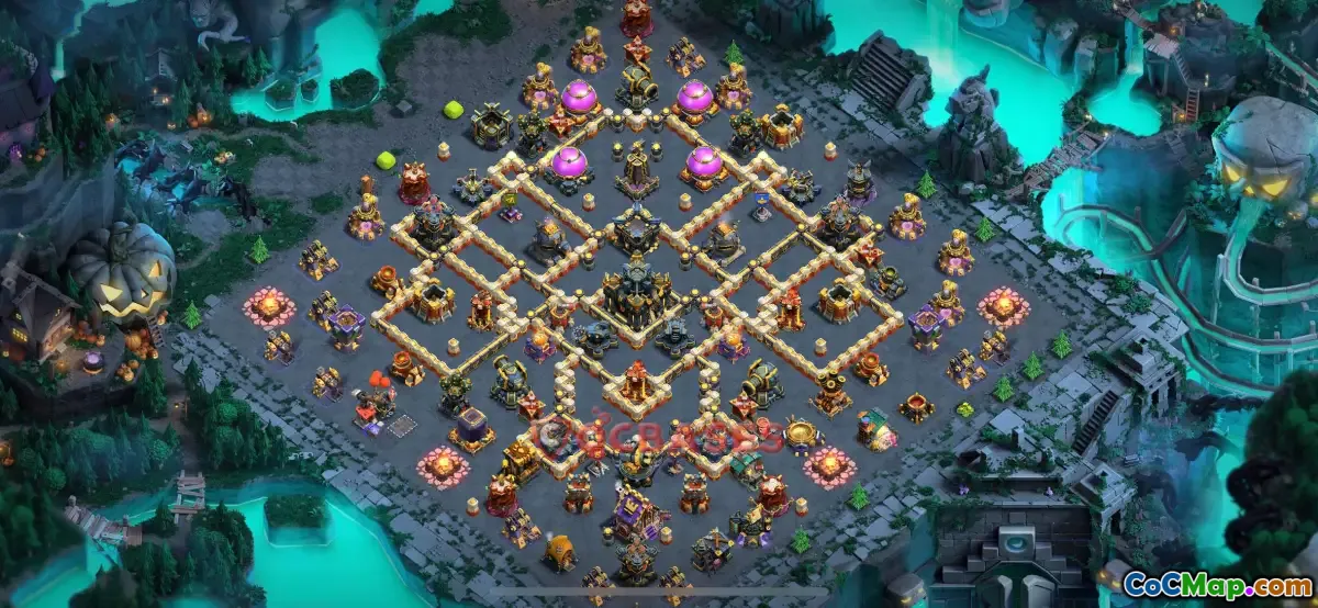 The Town Hall 17 war base in Clash of Clans is a strategic layout designed to defend against enemy attacks during clan wars. It incorporates various defensive structures such as cannons, archer towers, and splash damage units to protect the core of the base. The design often emphasizes a balanced distribution of defenses and traps to neutralize attacking strategies and prevent the enemy from achieving a three-star victory.