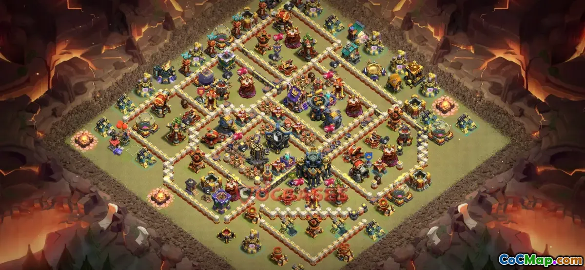 One effective feature of the TH17 war base is its anti-three-star design, which focuses on frustrating attackers' strategies and encouraging them to deploy more troops and spells. This often includes centralizing key defenses and designing compartments that slow down enemy progress. The placement of heroes, such as the Barbarian King, Archer Queen, and Grand Warden, is also carefully considered to provide additional protection around the core and vital defenses.