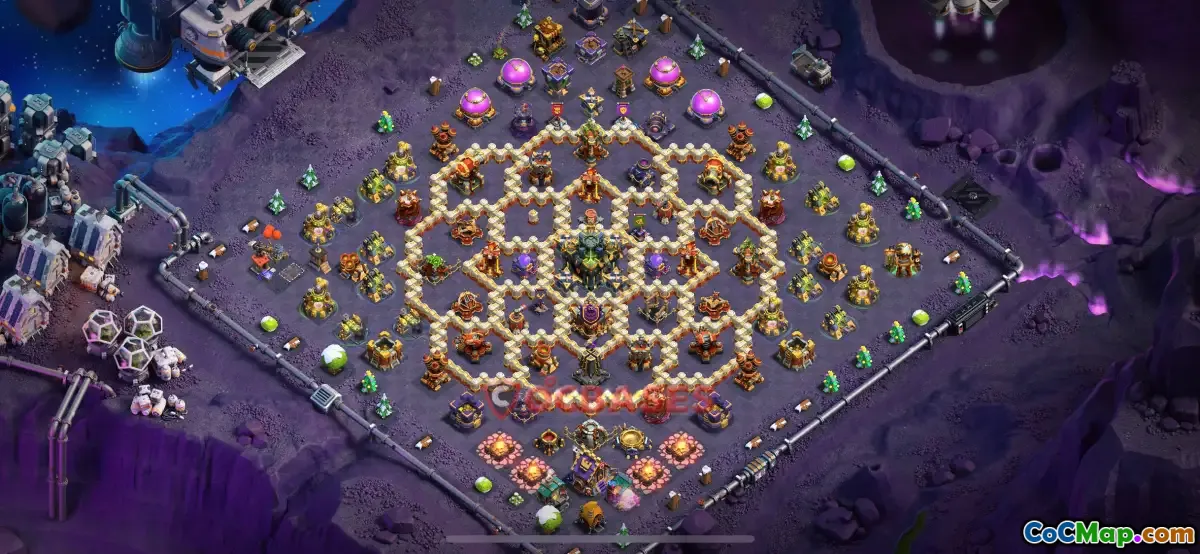 The Town Hall 17 war base in Clash of Clans is a strategic layout designed to maximize defense during clan wars. It is tailored to protect the core vital areas, including resources and the Town Hall itself, from enemy attacks. These bases often feature well-planned walls, defensive structures, and traps to slow down and weaken attacking troops, ensuring they cannot easily breach the defenses.