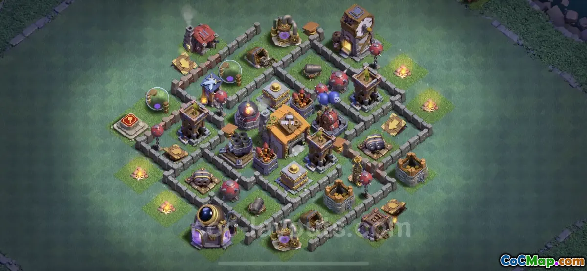 This base copy design not only focuses on defensive strength but also encourages effective resource protection. The layout ensures that essential resources are well-guarded, making it difficult for opponents to achieve their objectives without facing substantial resistance. The thoughtful arrangement of buildings and traps plays a crucial role in deterring enemy forces, providing an advantageous position in the Builder Base battles.