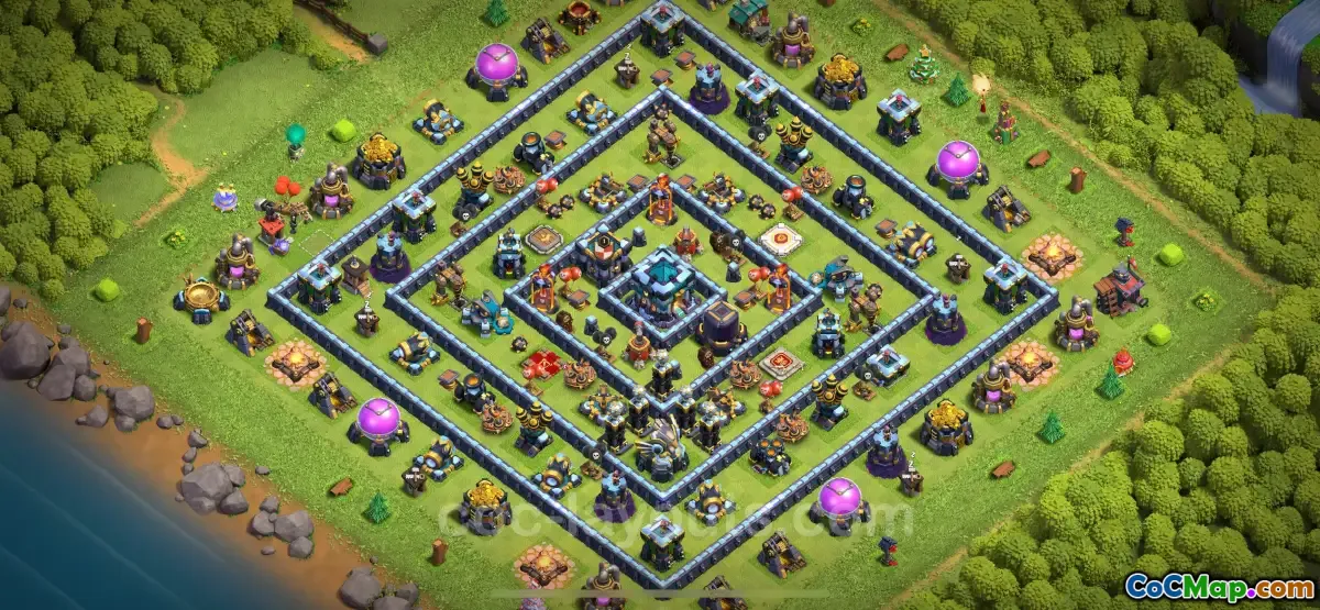 Além disso, incorporar medidas defensivas específicas, como edifícios de alto dano, como a Artilharia Águia e os Dispersores, também pode aumentar a eficácia de uma base. Estas estruturas são cruciais para lidar com o envio de tropas em massa, que são tácticas comuns para ganhar estrelas. Ao garantir que essas defesas de alto dano estejam bem protegidas e estrategicamente posicionadas, uma base TH13 pode aumentar significativamente sua resiliência geral contra diversas combinações de ataques.