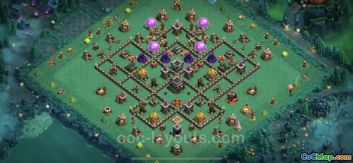 Another element to consider in a robust anti-2 stars Town Hall 9 base is the inclusion of various traps and defenses that catch attackers off guard. Players can place bombs, spring traps, and seeking air mines strategically within the base layout to disrupt and damage invading troops. The success of these traps often relies on how well the player anticipates common attack strategies and positions these defenses accordingly.