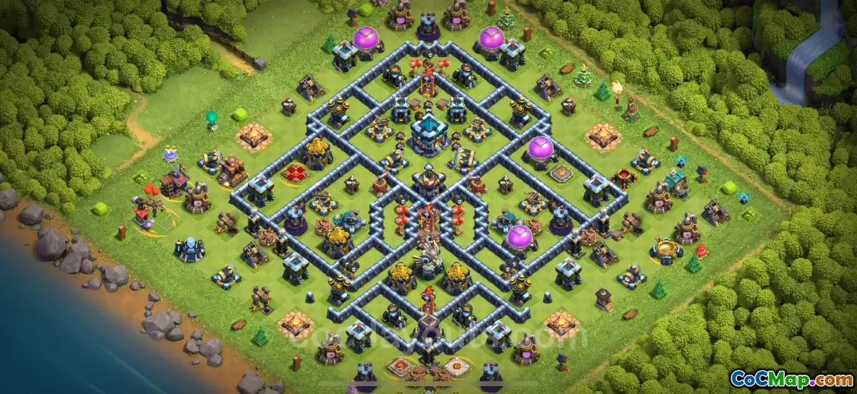 Em Clash of Clans, o Centro de Vila 13 apresenta novos edifícios e recursos que podem ser usados estrategicamente para criar configurações defensivas robustas. O artigo enfatiza a importância de utilizar esses elementos para construir uma base que possa resistir a diversas estratégias de ataque. A natureza híbrida do layout da base combina elementos que evitam ataques terrestres e aéreos, tornando-a versátil contra uma variedade de oponentes.