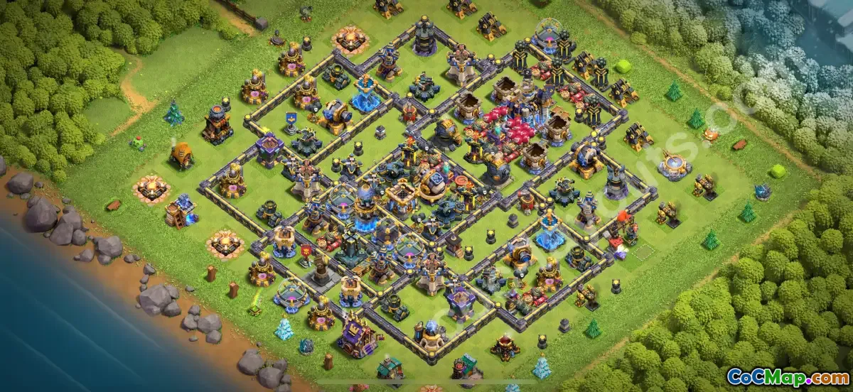 With the provided link, you can easily copy this top-tier TH18 defense layout and customize it to suit your attack style. Its robust design ensures thorough coverage of key areas, including the Town Hall, Clan Castle, and key defenses, making it a preferred choice for players aiming for high level protection and success in clan wars and farming.