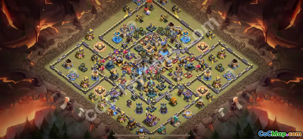 This top-tier Town Hall 18 war base is meticulously designed to counter all attack strategies in Clash of Clans 2025. Its anti-everything layout provides balanced defense against air raids, ground assaults, and strategic troop deployments, making it ideal for Clan War League (CWL) battles. The base's core is well-guarded by layered walls and strategically placed traps, ensuring maximum protection for the Town Hall and key defenses.