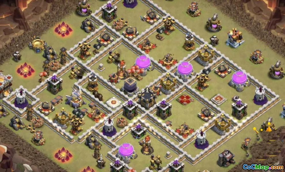 In addition to the regular village layout, war bases are designed with a focus on defending against known attacking tactics in clan wars. War base layouts typically feature centralized Town Hall placement, with clan castle and heroes similarly protected. The map design involves connecting key defenses with walls in a way that delays the enemy’s progress and forces them into areas where they will take significant damage. This comprehensive approach to base design ensures that Clash of Clans players can effectively defend their village, whether for regular play or clan war strategies.