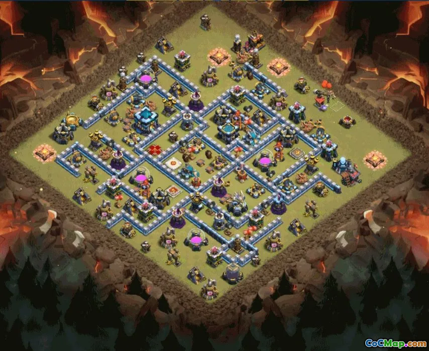 The base layout for Clash of Clans Town Hall 13 features a well-organized design focused on both defense and resource protection. It includes strategically placed defensive structures such as cannons, archer towers, and air defenses to cover all angles of attack. This layout aims to safeguard your resources and minimize potential damage from attacking clans, making it a popular choice among players who want a balanced defense setup.