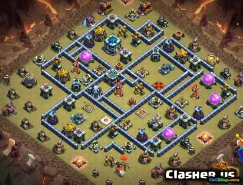 Além do layout principal da vila, a descrição inclui vários tipos de bases, como bases de guerra e bases de troféus. Uma base de guerra geralmente se concentra em defender contra ataques inimigos durante as guerras do clã, enquanto uma base de troféus visa manter troféus e manter a classificação de um jogador no jogo. Cada um desses layouts tem elementos de design específicos criados para atender às necessidades estratégicas dos jogadores nesse nível.