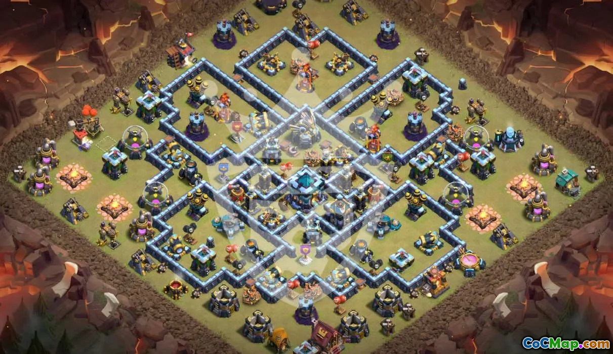 Discover expertly designed Clash of Clans Town Hall 13 base layouts to enhance your defense and trophy growth. These layouts include home village, trophy, war bases, and comprehensive CoC maps, making it easy to copy the ideal setup for your gameplay style. Strategically placed defenses, well-protected resources, and anti-three-star designs are featured to maximize protection against opponents.