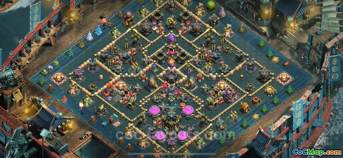 Overall, this base copy and design for Town Hall 17 in Clash of Clans are created to provide a balanced approach, blending resource protection with defensive capabilities. It offers an effective plan for players who want to safeguard their loot and resources while still having a base that can withstand attacks reasonably well. The layout emphasizes strategic placement of key defenses and resource storages to optimize both resource harvesting and defense.