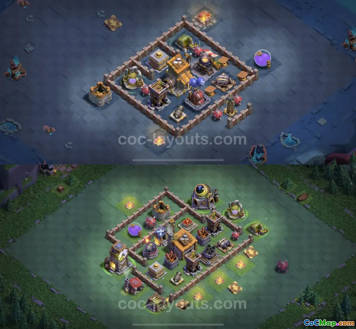 Além disso, o layout incorpora armadilhas e itens defensivos para surpreender e eliminar as forças invasoras. As armadilhas são colocadas em áreas onde o construtor antecipa o movimento das tropas inimigas, complicando ainda mais os planos de ataque de potenciais intrusos. A combinação de paredes, defesas e armadilhas cria uma defesa em múltiplas camadas que se mostra eficaz contra diversas estratégias de ataque comumente usadas em Clash of Clans.