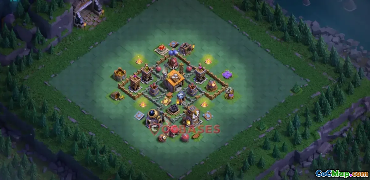 The trophy base for Builder Hall 6 typically features a layout that combines defensive structures strategically positioned to cover each other. Players often incorporate a mix of traps, such as push traps and spring traps, to disrupt attacking forces. The use of high-hitpoint buildings can also be beneficial, as they can absorb damage while the defensive units, like the Cannon and Archer Towers, take aim at the enemy. Effective anti-air measures are crucial, as air troops like Baby Dragons and Minions are commonly used at this level, necessitating a base plan that minimizes their impact.