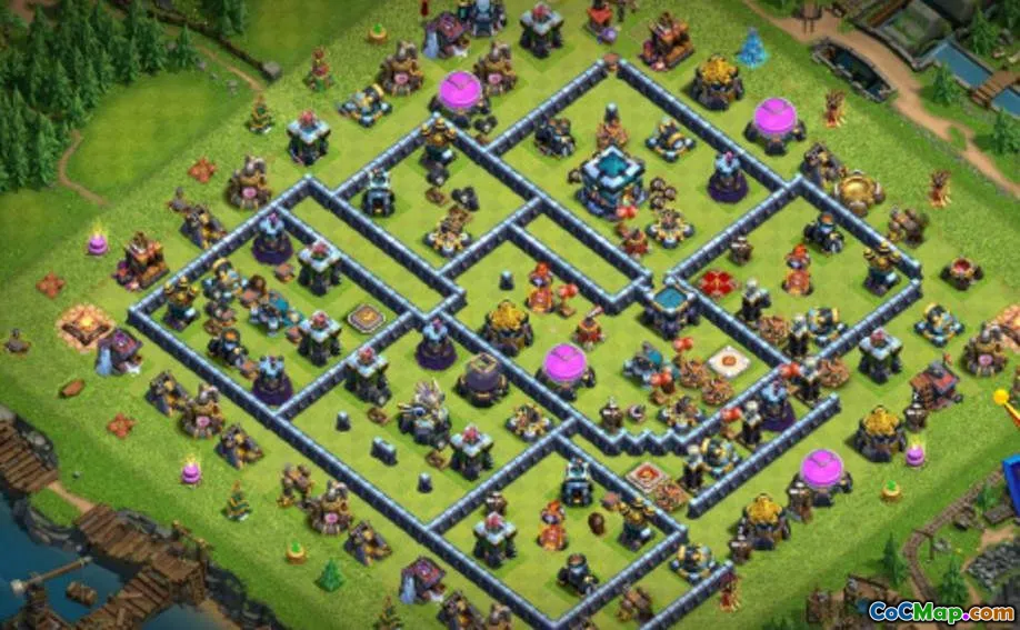 O layout da base do Clash of Clans para a prefeitura 13 foi projetado para aprimorar a estratégia de jogadores e as capacidades de defesa. Esse layout em particular se concentra em otimizar a colocação de estruturas, armadilhas e armazenamentos de recursos defensivos, permitindo que os jogadores protejam seus ativos valiosos e, ao mesmo tempo, garantindo uma fortaleza contra ataques inimigos. Nesse nível, os jogadores obtêm acesso a edifícios avançados, o que pode melhorar significativamente suas estratégias defensivas se utilizadas corretamente.
