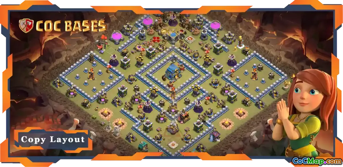 O layout geral é meticulosamente elaborado para defesa contra diversas estratégias de ataque. Ao considerar cuidadosamente a colocação de armadilhas e estruturas defensivas, a base visa fornecer proteção abrangente contra ataques terrestres e aéreos. Como resultado, os atacantes podem ter dificuldade em coordenar eficazmente as suas unidades, deixando-as vulneráveis às contramedidas utilizadas pelas defesas da base.